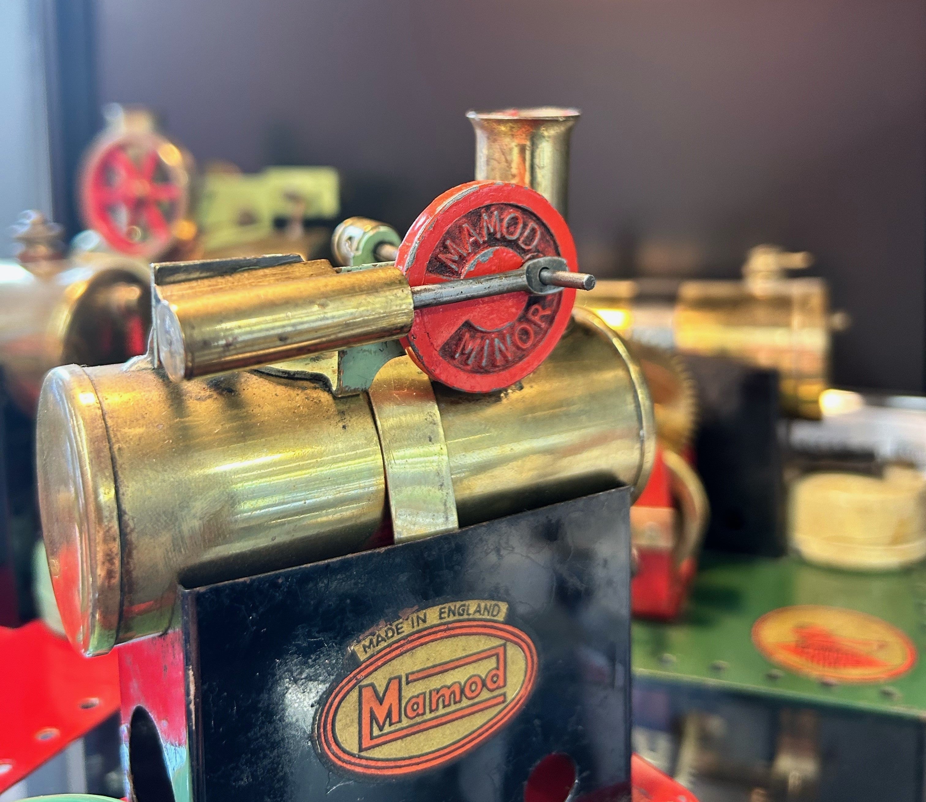 A popular way of building a working collection of Wilesco, Mamod and similar products is to set up a live steam board comprising stationary engines and accessories arranged with connecting line-shafts and drive belts.