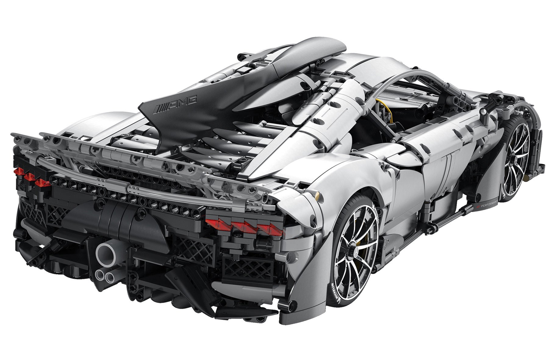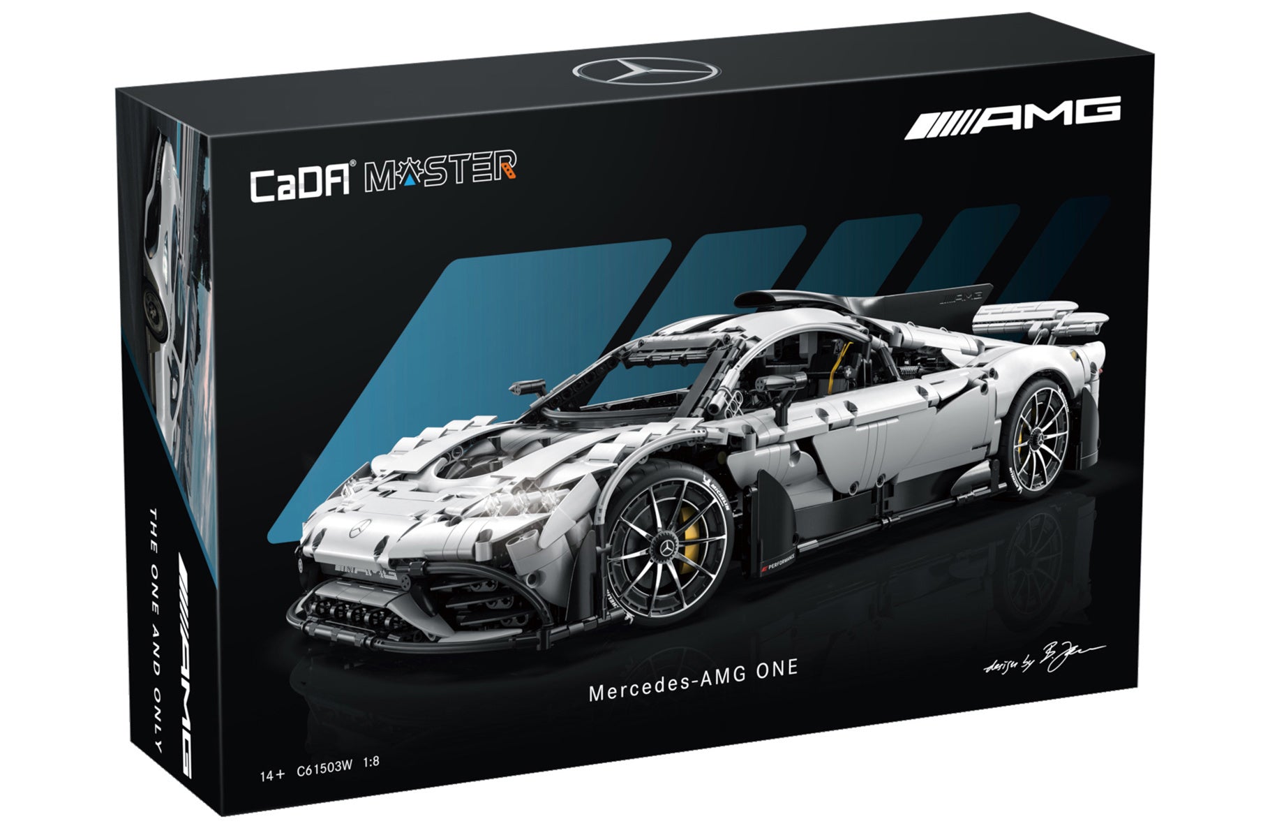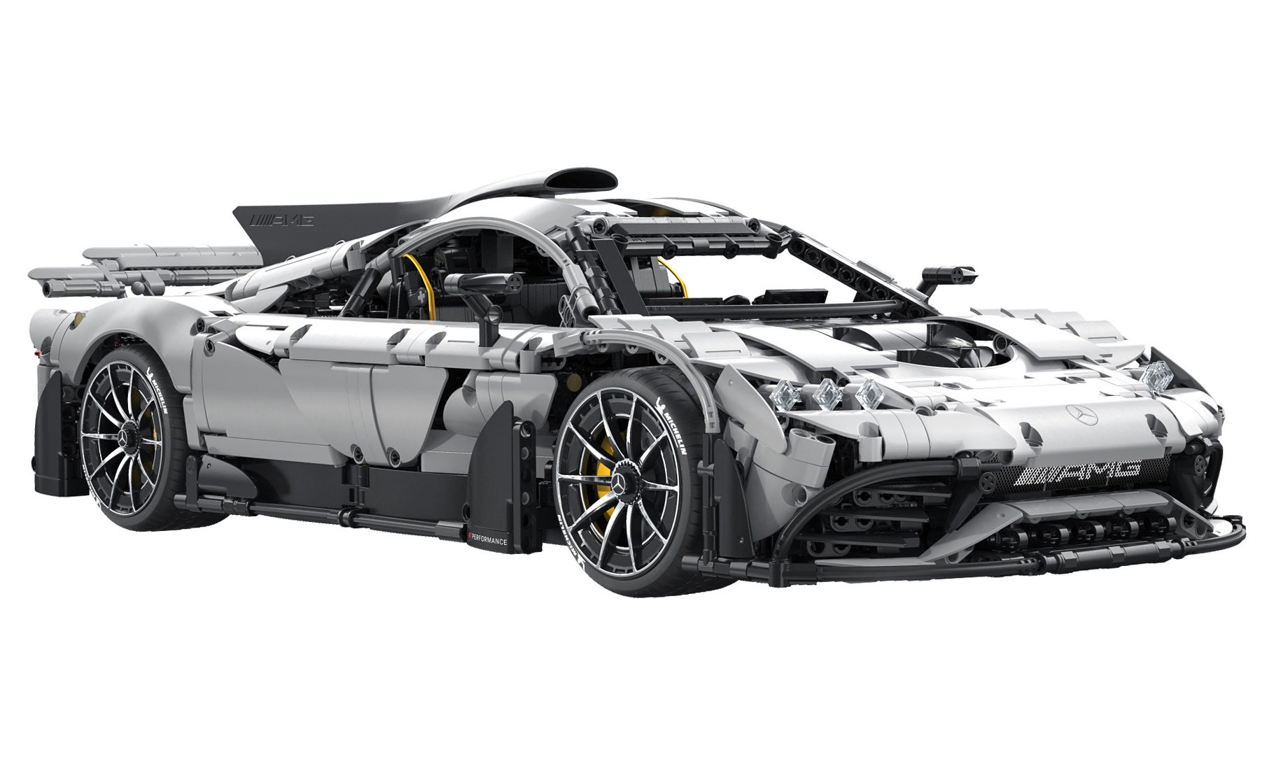 The officially licensed Mercedes-AMG ONE by CaDA Bricks is a highly detailed brick model car made up of 3,295 pieces in 1:8 scale. The model is a highly detailed and faithful recreation of the Formula 1 inspired road-legal racing car unveiled on 1st June 2022. A mid-engined, two-door coupé with all-wheel-drive, it has a hybrid drivetrain that share many features with modern F1 cars. The internal combustion engine is a 1.6 litre turbocharged V6 that works in conjunction with four electric motors for a peak of 1,048bhp and a 0-62mph time of 2.9 seconds.