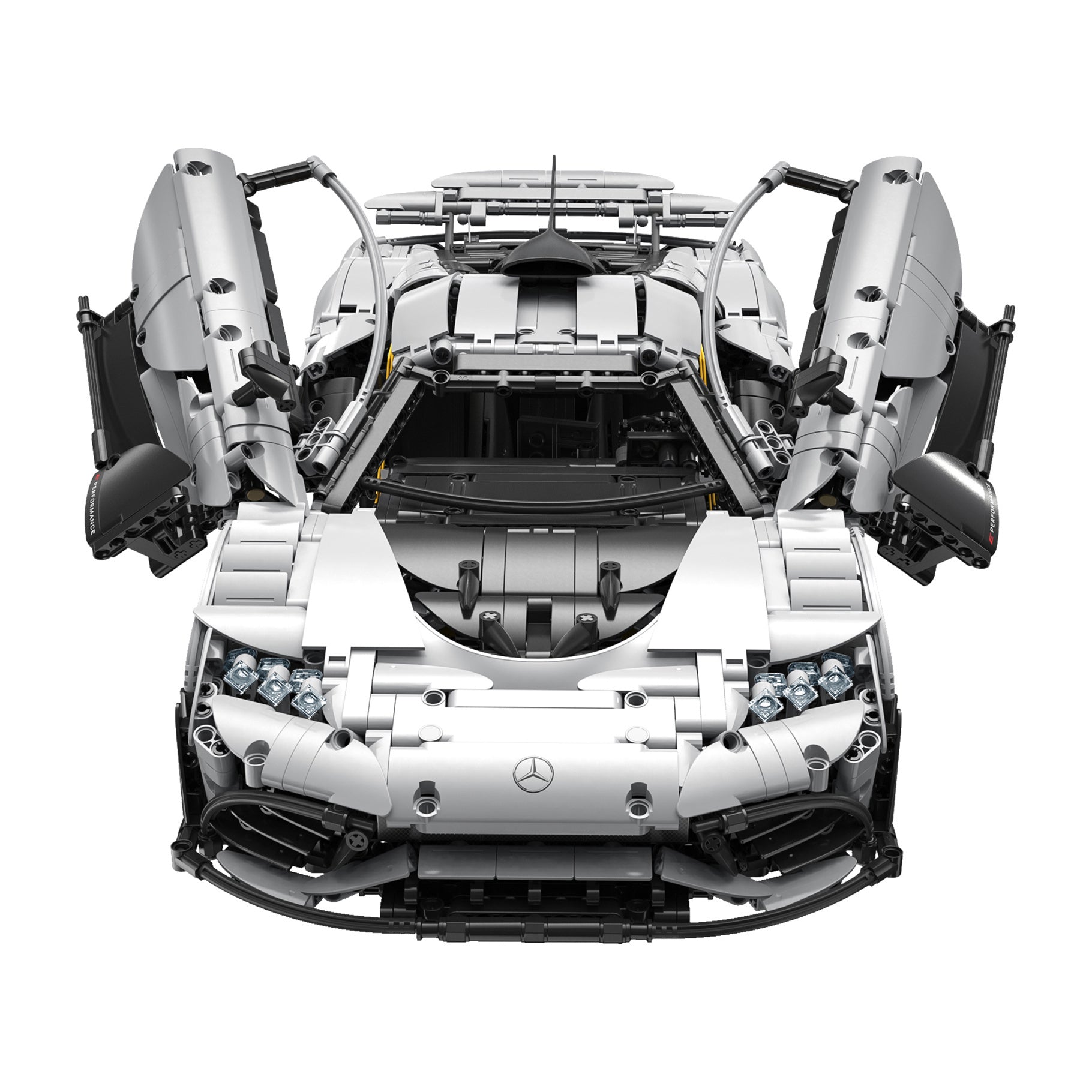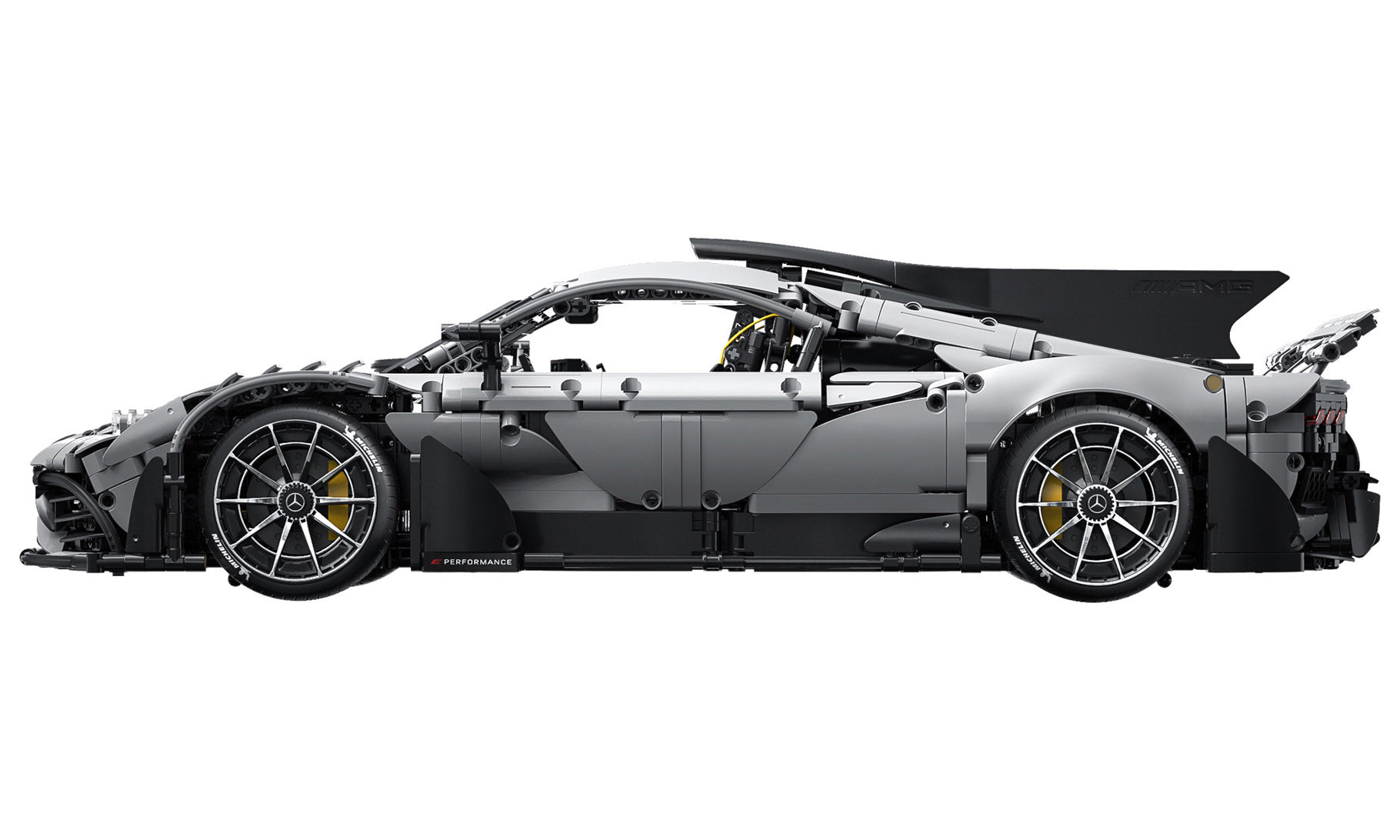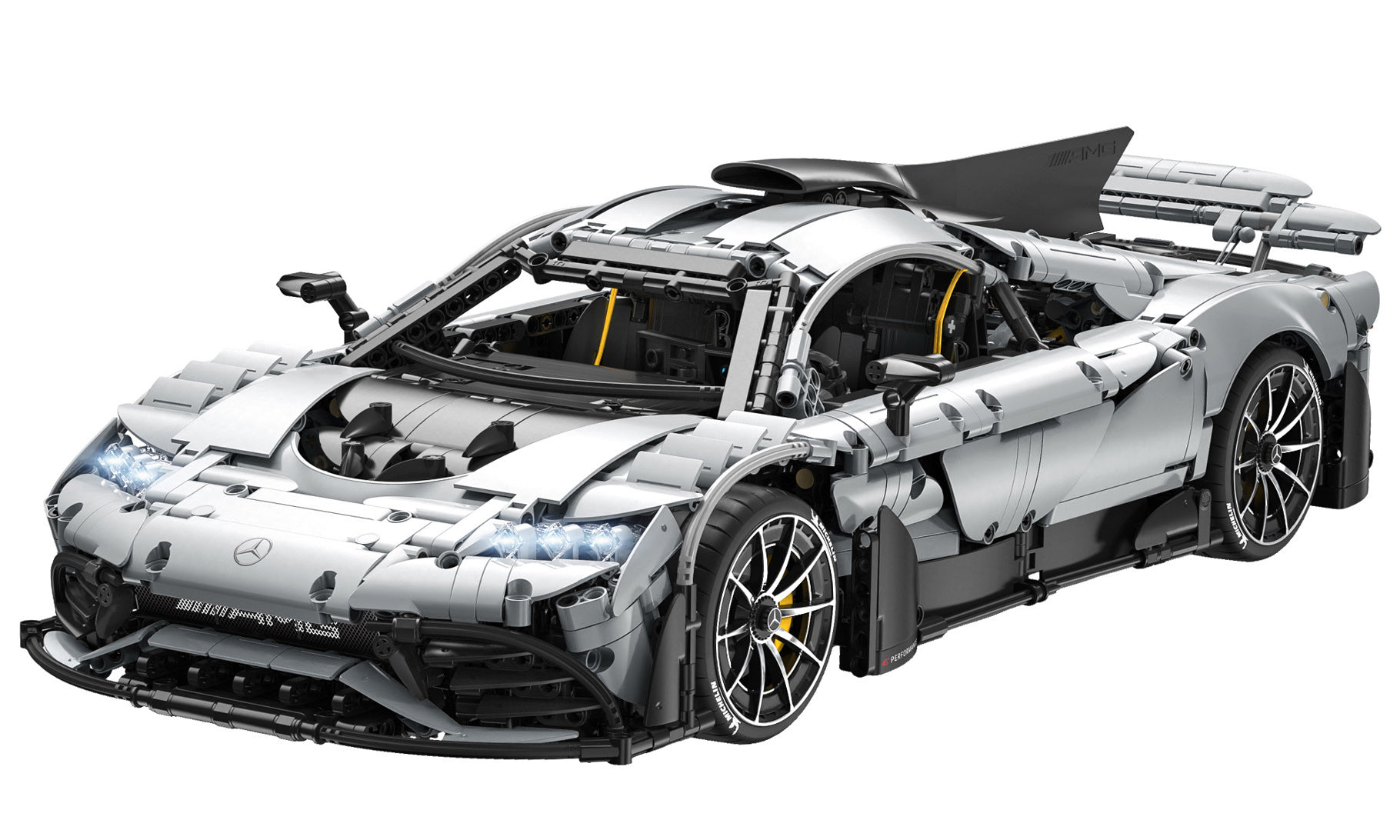 The officially licensed Mercedes-AMG ONE by CaDA Bricks is a highly detailed brick model car made up of 3,295 pieces in 1:8 scale. The model is a highly detailed and faithful recreation of the Formula 1 inspired road-legal racing car unveiled on 1st June 2022. A mid-engined, two-door coupé with all-wheel-drive, it has a hybrid drivetrain that share many features with modern F1 cars. The internal combustion engine is a 1.6 litre turbocharged V6 that works in conjunction with four electric motors for a peak of 1,048bhp and a 0-62mph time of 2.9 seconds.