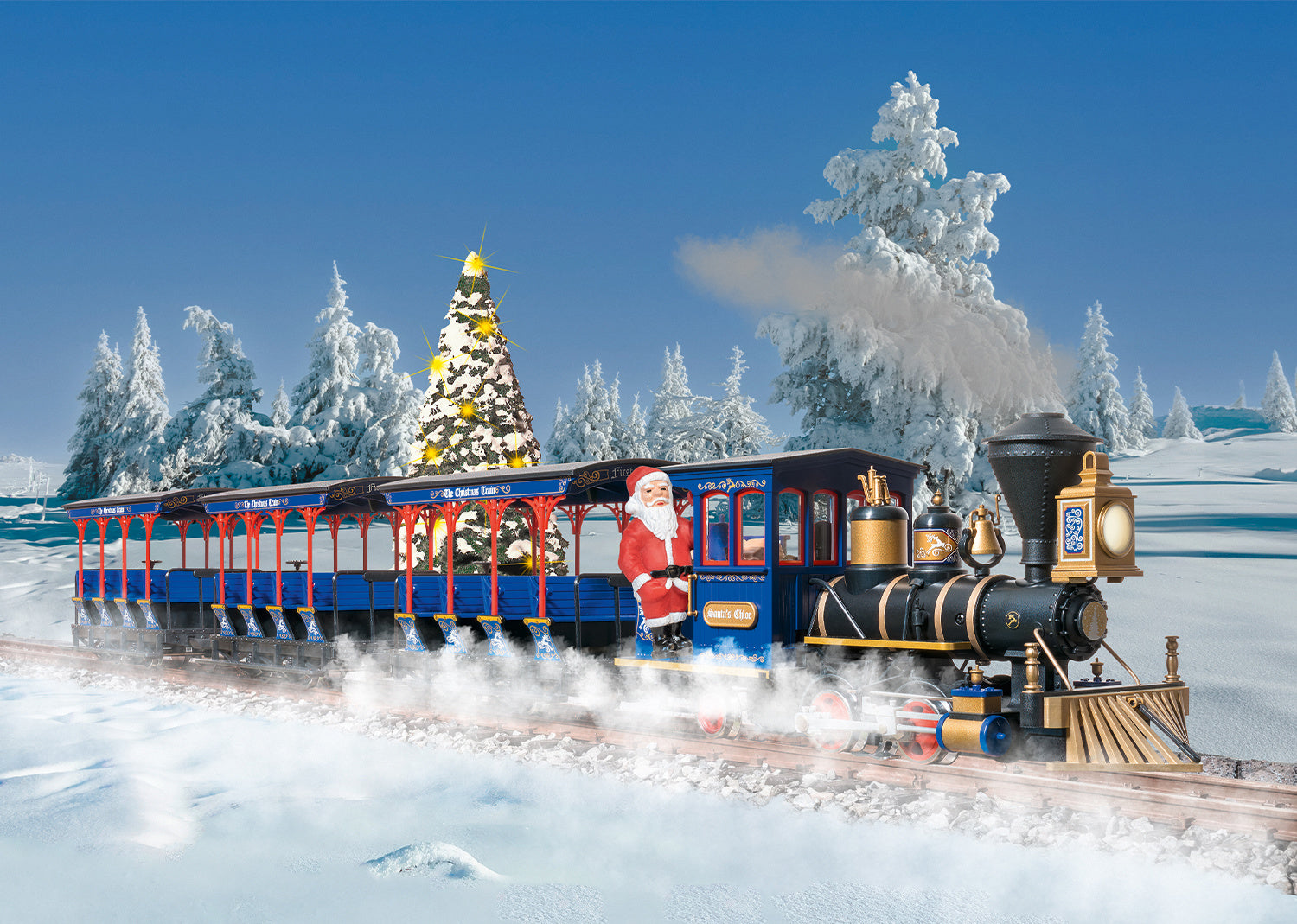 This is a model of the field railroad locomotive “CHLOE”. It is finely detailed with a Christmas paint scheme and lettering. Both driving wheelsets are driven by a powerful motor with ball bearings. The headlight is lighted. A figure of a Santa Claus as a locomotive engineer is included. Length over the buffers 28 cm / 11“.